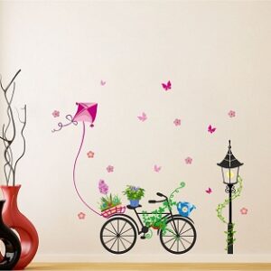 1bhaav Beautiful Cycle with Tree pots Kite Wall Sticker