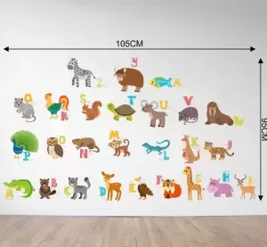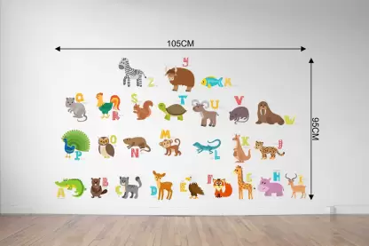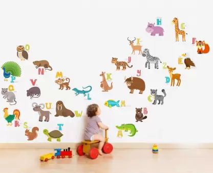 A 1bhaav Animals Name Wall Sticker also known as a wall decal or wall graphic, is a type of decorative adhesive design that is typically applied directly to walls or other smooth surfaces. It is a versatile and convenient way to enhance the aesthetic appeal of a room without the need for extensive painting or permanent modifications. Wall stickers come in a wide variety of designs, sizes, and materials to suit different preferences and purposes. They can be made from vinyl, which is a durable and flexible material that adheres well to surfaces, or other types of removable adhesive materials. The designs of 1bhaav Animals Name Wall Sticker range from simple patterns and shapes to intricate illustrations, landscapes, quotes, and even customized graphics. They can depict nature scenes, animals, geometric shapes, flowers, famous landmarks, popular characters, and much more. Some wall stickers are specifically designed for children’s rooms, featuring cartoon characters or educational elements. Applying a wall sticker is usually a straightforward process. The sticker is typically supplied as a single sheet or multiple pieces, depending on the design. It is usually accompanied by a protective backing paper that needs to be removed before sticking it to the wall. Once the backing paper is peeled off, the adhesive side of the sticker is pressed onto the desired surface, ensuring it is smooth and free from dust or debris. The sticker can then be smoothed out to remove any air bubbles and ensure proper adhesion. One of the advantages of wall stickers is their removable nature. They can be easily peeled off from the surface without leaving residue or causing damage to the wall. This makes them an excellent choice for those who want to experiment with different designs or prefer to change the decor frequently. Overall, wall stickers provide a convenient and cost-effective way to personalize and enhance the appearance of a room. They offer a wide range of design options and can be easily applied and removed, making them a popular choice for both temporary and long-term decoration.