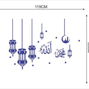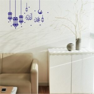 1bhaav Blue Lamps Moon Star Islamic Wall Sticker also known as wall decals or wall art, are decorative elements designed to be applied to walls and other flat surfaces. They are typically made of thin, adhesive-backed material, such as vinyl, that allows them to be easily stuck to walls without damaging the paint or surface. Wall stickers come in various shapes, sizes, and designs, and they can be a versatile and affordable way to enhance the aesthetics of a room. Wall stickers are available in a wide range of designs, including nature scenes, abstract patterns, inspirational quotes, and custom graphics. They can cater to various tastes and themes, making them suitable for any room in your home. Wall stickers come in various sizes, from small decals that can be used to accent a specific area to large murals that cover an entire wall. This flexibility allows you to customize your décor according to your needs and available space. Applying wall stickers is a straightforward process. They typically come with a backing that you peel away to reveal the adhesive side.1bhaav Blue Lamps Moon Star Islamic Wall Sticker You can then carefully stick them to your desired surface, pressing out any air bubbles for a smooth finish. They can be removed without leaving residue, making them suitable for renters.
