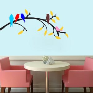 1bhaav Colorful Tree Birds Sitting on Branch Decorative Wall Sticker also known as wall decals or wall art, are decorative elements designed to be applied to walls and other flat surfaces. They are typically made of thin, adhesive-backed material, such as vinyl, that allows them to be easily stuck to walls without damaging the paint or surface. Wall stickers come in various shapes, sizes, and designs, and they can be a versatile and affordable way to enhance the aesthetics of a room.Wall stickers are available in a wide range of designs, including nature scenes, abstract patterns, inspirational quotes, and custom graphics. They can cater to various tastes and themes, making them suitable for any room in your home. Wall stickers come in various sizes, from small decals that can be used to accent a specific area to large murals that cover an entire wall. This flexibility allows you to customize your décor according to your needs and available space. Applying wall stickers is a straightforward process. They typically come with a backing that you peel away to reveal the adhesive side.1bhaav Colorful Tree Birds Sitting on Branch Decorative Wall Sticker You can then carefully stick them to your desired surface, pressing out any air bubbles for a smooth finish. They can be removed without leaving residue, making them suitable for renters.