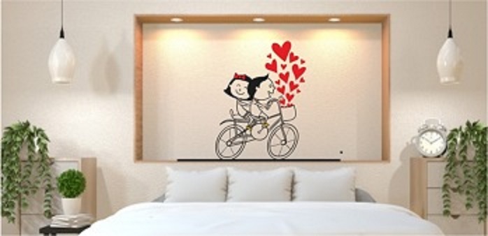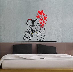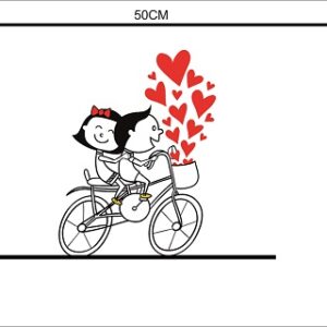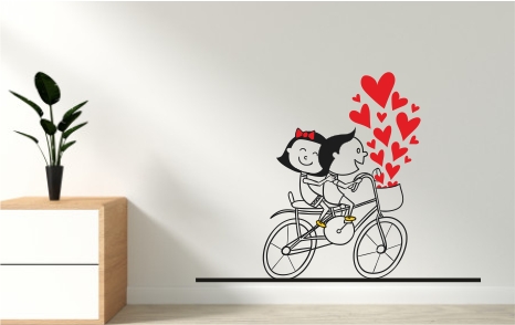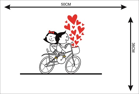1bhaav Couple on Cycle with Hearts Wall Sticker also known as wall decals or wall art, are decorative elements designed to be applied to walls and other flat surfaces. They are typically made of thin, adhesive-backed material, such as vinyl, that allows them to be easily stuck to walls without damaging the paint or surface. Wall stickers come in various shapes, sizes, and designs, and they can be a versatile and affordable way to enhance the aesthetics of a room.Wall stickers are available in a wide range of designs, including nature scenes, abstract patterns, inspirational quotes, and custom graphics. They can cater to various tastes and themes, making them suitable for any room in your home. Wall stickers come in various sizes, from small decals that can be used to accent a specific area to large murals that cover an entire wall. This flexibility allows you to customize your décor according to your needs and available space. Applying wall stickers is a straightforward process. They typically come with a backing that you peel away to reveal the adhesive side.1bhaav Couple on Cycle with Hearts Wall Sticker You can then carefully stick them to your desired surface, pressing out any air bubbles for a smooth finish. They can be removed without leaving residue, making them suitable for renters.