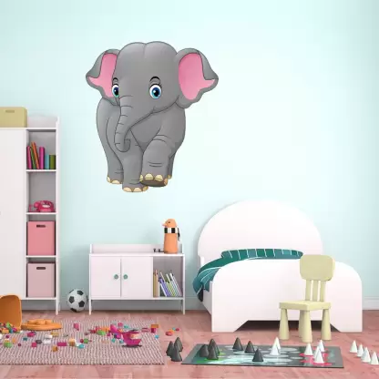 A 1bhaav Cute Elephant Wall Sticker  also known as a wall decal or wall graphic, is a decorative element that is designed to be applied directly onto a wall or other smooth surface. It is made from a thin, adhesive-backed material, typically vinyl, which allows it to adhere securely to the wall without causing any damage when removed. Wall stickers come in a wide variety of designs, sizes, and colors, making them a versatile option for adding a touch of creativity and personalization to any living space. They can feature various images, patterns, quotes, or illustrations, catering to different tastes and preferences. The application of a wall sticker is relatively simple. The backing paper is peeled off, revealing the adhesive side of the sticker. It is then carefully pressed onto the desired surface, ensuring a smooth and bubble-free application. Once in place, the sticker can be adjusted or repositioned if necessary. Some wall stickers may come with additional elements, such as separate pieces or layers, which can be applied separately to create a more intricate design.1bhaav Cute Elephant Wall Sticker are often used in interior design to enhance the aesthetic appeal of a room. They can be applied to walls, doors, windows, furniture, or any other smooth surface that is suitable for adhesion. Common places to use wall stickers include bedrooms, living rooms, nurseries, offices, and classrooms. One of the advantages of wall stickers is that they are temporary and can be easily removed without leaving any residue or causing damage to the surface. This makes them a popular choice for those who want to update their home décor frequently or for renters who cannot make permanent changes to their living space. In summary, a wall sticker is a self-adhesive decorative element that allows individuals to personalize their living space with various designs, patterns, quotes, or illustrations. It is easy to apply, repositionable, and removable, making it a versatile option for adding creativity and visual interest to any room
