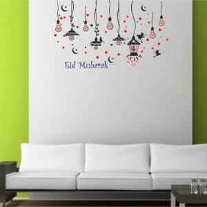1bhaav Eid Mubarak Colourful lamp Heart Birds Wall Sticker  also known as wall decals or wall art, are decorative elements designed