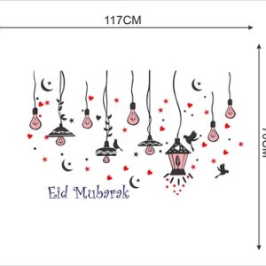 1bhaav Eid Mubarak Colourful lamp Heart Birds Wall Sticker  also known as wall decals or wall art, are decorative elements designed to be applied to walls and other flat surfaces. They are typically made of thin, adhesive-backed material, such as vinyl, that allows them to be easily stuck to walls without damaging the paint or surface. Wall stickers come in various shapes, sizes, and designs, and they can be a versatile and affordable way to enhance the aesthetics of a room.Wall stickers are available in a wide range of designs, including nature scenes, abstract patterns, inspirational quotes, and custom graphics. They can cater to various tastes and themes, making them suitable for any room in your home. Wall stickers come in various sizes, from small decals that can be used to accent a specific area to large murals that cover an entire wall. This flexibility allows you to customize your décor according to your needs and available space. Applying wall stickers is a straightforward process. They typically come with a backing that you peel away to reveal the adhesive side.1bhaav Eid Mubarak Colourful lamp Heart Birds Wall Sticker You can then carefully stick them to your desired surface, pressing out any air bubbles for a smooth finish. They can be removed without leaving residue, making them suitable for renters.