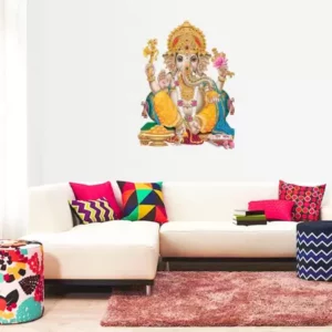 A 1bhaav Ganeshji Wall Sticker also known as a wall decal or wall graphic, is a decorative element that is designed to be applied directly onto a wall or other smooth surface. It is made from a thin, adhesive-backed material, typically vinyl, which allows it to adhere securely to the wall without causing any damage when removed. Wall stickers come in a wide variety of designs, sizes, and colors, making them a versatile option for adding a touch of creativity and personalization to any living space. They can feature various images, patterns, quotes, or illustrations, catering to different tastes and preferences. The application of a wall sticker is relatively simple. The backing paper is peeled off, revealing the adhesive side of the sticker. It is then carefully pressed onto the desired surface, ensuring a smooth and bubble-free application. Once in place, the sticker can be adjusted or repositioned if necessary. Some wall stickers may come with additional elements, such as separate pieces or layers, which can be applied separately to create a more intricate design.1bhaav Ganeshji Wall Sticker are often used in interior design to enhance the aesthetic appeal of a room. They can be applied to walls, doors, windows, furniture, or any other smooth surface that is suitable for adhesion. Common places to use wall stickers include bedrooms, living rooms, nurseries, offices, and classrooms. One of the advantages of wall stickers is that they are temporary and can be easily removed without leaving any residue or causing damage to the surface. This makes them a popular choice for those who want to update their home décor frequently or for renters who cannot make permanent changes to their living space. In summary, a wall sticker is a self-adhesive decorative element that allows individuals to personalize their living space with various designs, patterns, quotes, or illustrations. It is easy to apply, repositionable, and removable, making it a versatile option for adding creativity and visual interest to any room