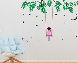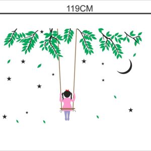 1bhaav Girl Playing Under Tree Green Leaves Star Moon Wall Sticker also known as wall decals or wall art, are decorative elements designed to be applied to walls and other flat surfaces. They are typically made of thin, adhesive-backed material, such as vinyl, that allows them to be easily stuck to walls without damaging the paint or surface. Wall stickers come in various shapes, sizes, and designs, and they can be a versatile and affordable way to enhance the aesthetics of a room.Wall stickers are available in a wide range of designs, including nature scenes, abstract patterns, inspirational quotes, and custom graphics. They can cater to various tastes and themes, making them suitable for any room in your home. Wall stickers come in various sizes, from small decals that can be used to accent a specific area to large murals that cover an entire wall. This flexibility allows you to customize your décor according to your needs and available space. Applying wall stickers is a straightforward process. They typically come with a backing that you peel away to reveal the adhesive side. 1bhaav Girl Playing Under Tree Green Leaves Star Moon Wall Sticker You can then carefully stick them to your desired surface, pressing out any air bubbles for a smooth finish. They can be removed without leaving residue, making them suitable for renters.
