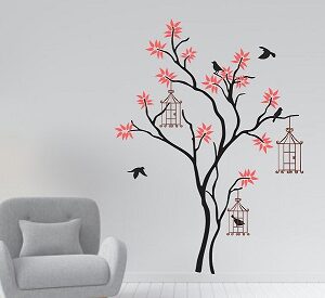 1bhaav Hanging cage on a Beautiful Tree Wall Sticker also known as wall decals or wall art, are decorative elements designed to be applied to walls and other flat surfaces. They are typically made of thin, adhesive-backed material, such as vinyl, that allows them to be easily stuck to walls without damaging the paint or surface. Wall stickers come in various shapes, sizes, and designs, and they can be a versatile and affordable way to enhance the aesthetics of a room.Wall stickers are available in a wide range of designs, including nature scenes, abstract patterns, inspirational quotes, and custom graphics. They can cater to various tastes and themes, making them suitable for any room in your home. Wall stickers come in various sizes, from small decals that can be used to accent a specific area to large murals that cover an entire wall. This flexibility allows you to customize your décor according to your needs and available space. Applying wall stickers is a straightforward process. They typically come with a backing that you peel away to reveal the adhesive side.1bhaav Hanging cage on a Beautiful Tree Wall Sticker You can then carefully stick them to your desired surface, pressing out any air bubbles for a smooth finish. They can be removed without leaving residue, making them suitable for renters.