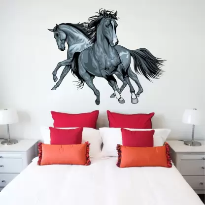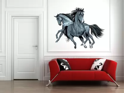 A 1bhaav Horses Running Wall Sticker also known as a wall decal or wall graphic, is a type of decorative adhesive design that is typically applied directly to walls or other smooth surfaces. It is a versatile and convenient way to enhance the aesthetic appeal of a room without the need for extensive painting or permanent modifications. Wall stickers come in a wide variety of designs, sizes, and materials to suit different preferences and purposes. They can be made from vinyl, which is a durable and flexible material that adheres well to surfaces, or other types of removable adhesive materials. The designs of 1bhaav Horses Running Wall Sticker range from simple patterns and shapes to intricate illustrations, landscapes, quotes, and even customized graphics. They can depict nature scenes, animals, geometric shapes, flowers, famous landmarks, popular characters, and much more. Some wall stickers are specifically designed for children’s rooms, featuring cartoon characters or educational elements. Applying a wall sticker is usually a straightforward process. The sticker is typically as a single sheet or multiple pieces, depending on the design. It is usually accompanied by a protective backing paper that needs to be removed before sticking it to the wall. Once the backing paper is peeled off, the adhesive side of the sticker is pressed onto the desired surface, ensuring it is smooth and free from dust or debris. The sticker can then be smoothed out to remove any air bubbles and ensure proper adhesion. One of the advantages of wall stickers is their removable nature. They can be easily peeled off from the surface without leaving residue or causing damage to the wall. This makes them an excellent choice for those who want to experiment with different designs or prefer to change the decor frequently. Overall, wall stickers provide a convenient and cost-effective way to personalize and enhance the appearance of a room. They offer a wide range of design options and can be easily applied and removed, making them a popular choice for both temporary and long-term decoration.