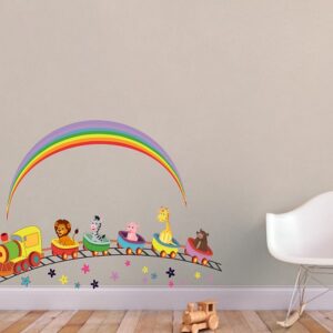 1bhaav Joy Animal Tree with Rainbow Wall Sticker also known as wall decals or wall art, are decorative elements designed to be applied to walls and other flat surfaces. They are typically made of thin, adhesive-backed material, such as vinyl, that allows them to be easily stuck to walls without damaging the paint or surface. Wall stickers come in various shapes, sizes, and designs, and they can be a versatile and affordable way to enhance the aesthetics of a room.Wall stickers are available in a wide range of designs, including nature scenes, abstract patterns, inspirational quotes, and custom graphics. They can cater to various tastes and themes, making them suitable for any room in your home. Wall stickers come in various sizes, from small decals that can be used to accent a specific area to large murals that cover an entire wall. This flexibility allows you to customize your décor according to your needs and available space. Applying wall stickers is a straightforward process. They typically come with a backing that you peel away to reveal the adhesive side.1bhaav Joy Animal Tree with Rainbow Wall Sticker You can then carefully stick them to your desired surface, pressing out any air bubbles for a smooth finish. They can be removed without leaving residue, making them suitable for renters.
