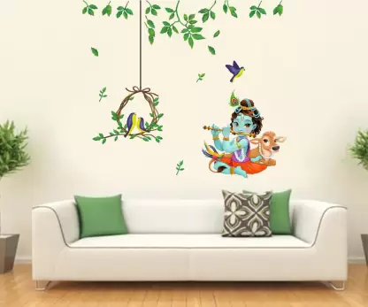 A 1bhaav Lord Krishna Wall Stickers also known as a wall decal or wall graphic, is a type of decorative adhesive design that is typically applied directly to walls or other smooth surfaces. It is a versatile and convenient way to enhance the aesthetic appeal of a room without the need for extensive painting or permanent modifications. Wall stickers come in a wide variety of designs, sizes, and materials to suit different preferences and purposes. They can be made from vinyl, which is a durable and flexible material that adheres well to surfaces, or other types of removable adhesive materials. The designs of 1bhaav Lord Krishna Wall Stickers range from simple patterns and shapes to intricate illustrations, landscapes, quotes, and even customized graphics. They can depict nature scenes, animals, geometric shapes, flowers, famous landmarks, popular characters, and much more. Some wall stickers are specifically designed for children’s rooms, featuring cartoon characters or educational elements. Applying a wall sticker is usually a straightforward process. The sticker is typically supplied as a single sheet or multiple pieces, depending on the design. It is usually accompanied by a protective backing paper that needs to be removed before sticking it to the wall. Once the backing paper is peeled off, the adhesive side of the sticker is pressed onto the desired surface, ensuring it is smooth and free from dust or debris. The sticker can then be smoothed out to remove any air bubbles and ensure proper adhesion. One of the advantages of wall stickers is their removable nature. They can be easily peeled off from the surface without leaving residue or causing damage to the wall. This makes them an excellent choice for those who want to experiment with different designs or prefer to change the decor frequently. Overall, wall stickers provide a convenient and cost-effective way to personalize and enhance the appearance of a room. They offer a wide range of design options and can be easily applied and removed, making them a popular choice for both temporary and long-term decoration.