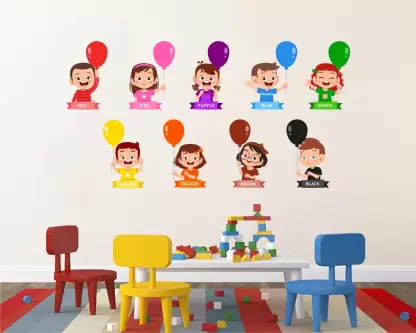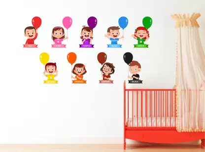 A 1bhaav Nursery Kids Wall Stickers also known as a wall decal or wall graphic, is a type of decorative adhesive design that is typically applied directly to walls or other smooth surfaces. It is a versatile and convenient way to enhance the aesthetic appeal of a room without the need for extensive painting or permanent modifications. Wall stickers come in a wide variety of designs, sizes, and materials to suit different preferences and purposes. They can be made from vinyl, which is a durable and flexible material that adheres well to surfaces, or other types of removable adhesive materials. The designs of 1bhaav Nursery Kids Wall Stickers range from simple patterns and shapes to intricate illustrations, landscapes, quotes, and even customized graphics. They can depict nature scenes, animals, geometric shapes, flowers, famous landmarks, popular characters, and much more. Some wall stickers are specifically designed for children’s rooms, featuring cartoon characters or educational elements. Applying a wall sticker is usually a straightforward process. The sticker is typically supplied as a single sheet or multiple pieces, depending on the design. It is usually accompanied by a protective backing paper that needs to be removed before sticking it to the wall. Once the backing paper is peeled off, the adhesive side of the sticker is pressed onto the desired surface, ensuring it is smooth and free from dust or debris. The sticker can then be smoothed out to remove any air bubbles and ensure proper adhesion. One of the advantages of wall stickers is their removable nature. They can be easily peeled off from the surface without leaving residue or causing damage to the wall. This makes them an excellent choice for those who want to experiment with different designs or prefer to change the decor frequently. Overall, wall stickers provide a convenient and cost-effective way to personalize and enhance the appearance of a room. They offer a wide range of design options and can be easily applied and removed, making them a popular choice for both temporary and long-term decoration.