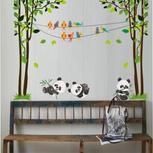 1bhaav Playing Pandas Birds Sitting on Tree Wall Sticker also known as wall decals or wall art, are decorative elements designed to be applied to walls and other flat surfaces. They are typically made of thin, adhesive-backed material, such as vinyl, that allows them to be easily stuck to walls without damaging the paint or surface. Wall stickers come in various shapes, sizes, and designs, and they can be a versatile and affordable way to enhance the aesthetics of a room.Wall stickers are available in a wide range of designs, including nature scenes, abstract patterns, inspirational quotes, and custom graphics. They can cater to various tastes and themes, making them suitable for any room in your home. Wall stickers come in various sizes, from small decals that can be used to accent a specific area to large murals that cover an entire wall. This flexibility allows you to customize your décor according to your needs and available space. Applying wall stickers is a straightforward process. They typically come with a backing that you peel away to reveal the adhesive side. 1bhaav Playing Pandas Birds Sitting on Tree Wall Sticker  You can then carefully stick them to your desired surface, pressing out any air bubbles for a smooth finish. They can be removed without leaving residue, making them suitable for renters.