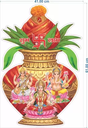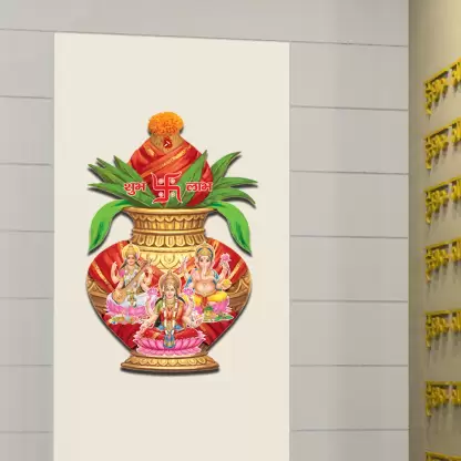 A 1bhaav Pooja With kalash Wall Sticker also known as a wall decal or wall graphic, is a decorative element that is designed to be applied directly onto a wall or other smooth surface. It is made from a thin, adhesive-backed material, typically vinyl, which allows it to adhere securely to the wall without causing any damage when removed. Wall stickers come in a wide variety of designs, sizes, and colors, making them a versatile option for adding a touch of creativity and personalization to any living space. They can feature various images, patterns, quotes, or illustrations, catering to different tastes and preferences. The application of a wall sticker is relatively simple. The backing paper is peeled off, revealing the adhesive side of the sticker. It is then carefully pressed onto the desired surface, ensuring a smooth and bubble-free application. Once in place, the sticker can be adjusted or repositioned if necessary. Some wall stickers may come with additional elements, such as separate pieces or layers, which can be applied separately to create a more intricate design.1bhaav Pooja With kalash Wall Sticker are often used in interior design to enhance the aesthetic appeal of a room. They can be applied to walls, doors, windows, furniture, or any other smooth surface that is suitable for adhesion. Common places to use wall stickers include bedrooms, living rooms, nurseries, offices, and classrooms. One of the advantages of wall stickers is that they are temporary and can be easily removed without leaving any residue or causing damage to the surface. This makes them a popular choice for those who want to update their home décor frequently or for renters who cannot make permanent changes to their living space. In summary, a wall sticker is a self-adhesive decorative element that allows individuals to personalize their living space with various designs, patterns, quotes, or illustrations. It is easy to apply, repositionable, and removable, making it a versatile option for adding creativity and visual interest to any room