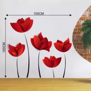 A 1bhaav Red Flower Wall Sticker  also known as a wall decal or wall graphic, is a type of decorative adhesive design that is typically applied directly to walls or other smooth surfaces. It is a versatile and convenient way to enhance the aesthetic appeal of a room without the need for extensive painting or permanent modifications. Wall stickers come in a wide variety of designs, sizes, and materials to suit different preferences and purposes. They can be made from vinyl, which is a durable and flexible material that adheres well to surfaces, or other types of removable adhesive materials. The designs of 1bhaav Red Flower Wall Sticker range from simple patterns and shapes to intricate illustrations, landscapes, quotes, and even customized graphics. They can depict nature scenes, animals, geometric shapes, flowers, famous landmarks, popular characters, and much more. Some wall stickers are specifically designed for children’s rooms, featuring cartoon characters or educational elements. Applying a wall sticker is usually a straightforward process. The sticker is typically supplied as a single sheet or multiple pieces, depending on the design. It is usually accompanied by a protective backing paper that needs to be removed before sticking it to the wall. Once the backing paper is peeled off, the adhesive side of the sticker is pressed onto the desired surface, ensuring it is smooth and free from dust or debris. The sticker can then be smoothed out to remove any air bubbles and ensure proper adhesion. One of the advantages of wall stickers is their removable nature. They can be easily peeled off from the surface without leaving residue or causing damage to the wall. This makes them an excellent choice for those who want to experiment with different designs or prefer to change the decor frequently. Overall, wall stickers provide a convenient and cost-effective way to personalize and enhance the appearance of a room. They offer a wide range of design options and can be easily applied and removed, making them a popular choice for both temporary and long-term decoration.
