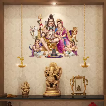 A 1bhaav Shivji Wall Sticker also known as a wall decal or wall graphic, is a decorative element that is designed to be applied directly onto a wall or other smooth surface. It is made from a thin, adhesive-backed material, typically vinyl, which allows it to adhere securely to the wall without causing any damage when removed. Wall stickers come in a wide variety of designs, sizes, and colors, making them a versatile option for adding a touch of creativity and personalization to any living space. They can feature various images, patterns, quotes, or illustrations, catering to different tastes and preferences. The application of a wall sticker is relatively simple. The backing paper is peeled off, revealing the adhesive side of the sticker. It is then carefully pressed onto the desired surface, ensuring a smooth and bubble-free application. Once in place, the sticker can be adjusted or repositioned if necessary. Some wall stickers may come with additional elements, such as separate pieces or layers, which can be applied separately to create a more intricate design.1bhaav Shivji Wall Sticker are often used in interior design to enhance the aesthetic appeal of a room. They can be applied to walls, doors, windows, furniture, or any other smooth surface that is suitable for adhesion. Common places to use wall stickers include bedrooms, living rooms, nurseries, offices, and classrooms. One of the advantages of wall stickers is that they are temporary and can be easily removed without leaving any residue or causing damage to the surface. This makes them a popular choice for those who want to update their home décor frequently or for renters who cannot make permanent changes to their living space. In summary, a wall sticker is a self-adhesive decorative element that allows individuals to personalize their living space with various designs, patterns, quotes, or illustrations. It is easy to apply, repositionable, and removable, making it a versatile option for adding creativity and visual interest to any room