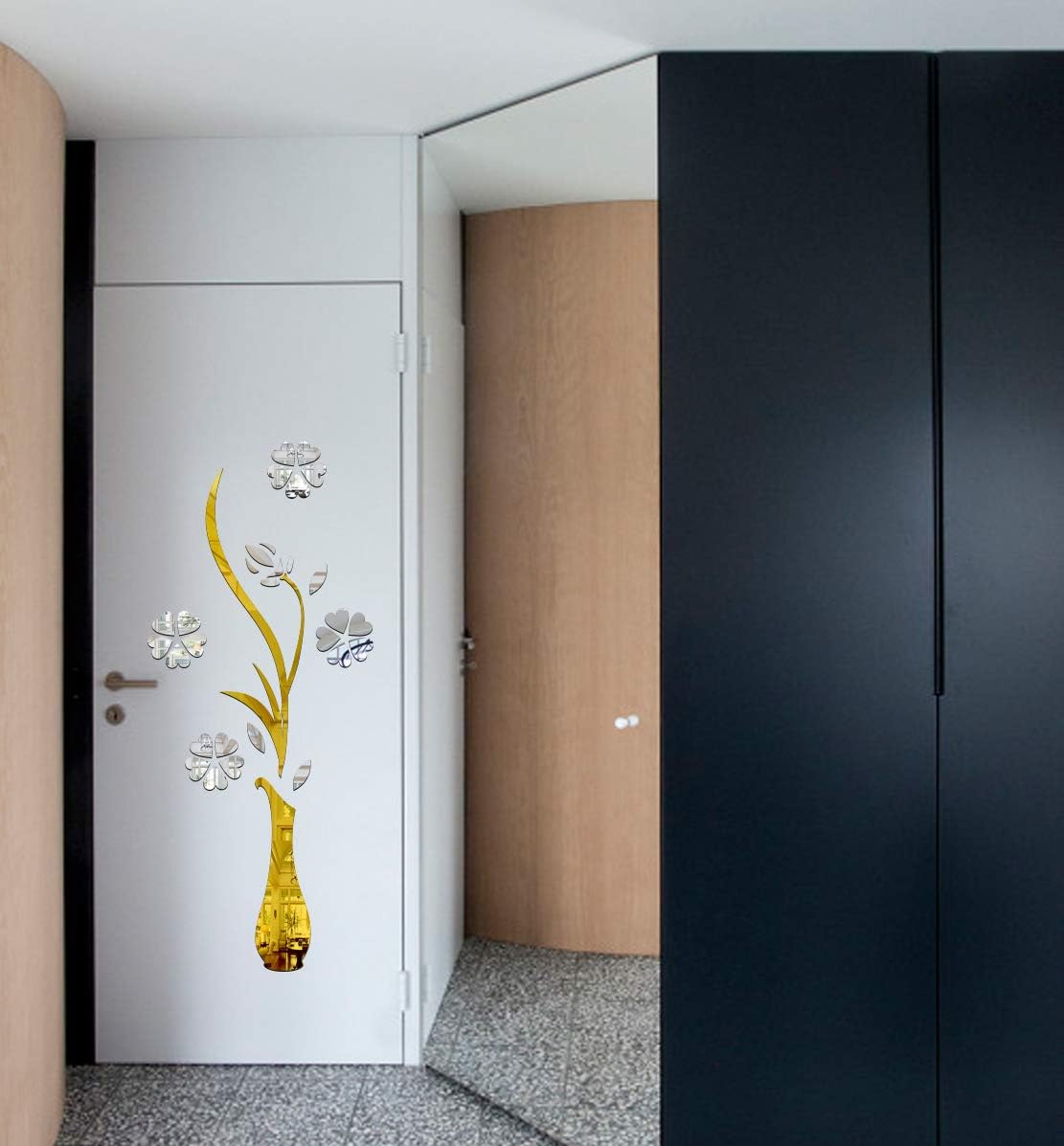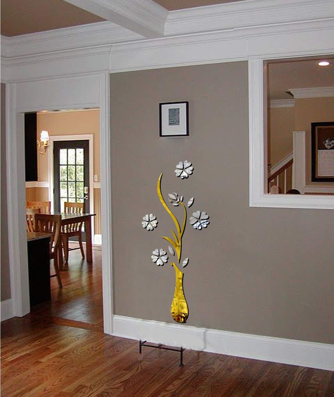 1BHAAV Silver Flower with Golden Vase Acrylic Wall Sticker Acrylic mirror wall decor stickers are a stylish and versatile way to enhance the aesthetic appeal of your living space. These stickers are designed to mimic the appearance of real mirrors but are made from lightweight and durable acrylic material.Crafted from high-quality acrylic, these mirror wall decor stickers are lightweight, shatterproof, and safer than traditional glass mirrors. The use of acrylic also makes them more resistant to scratches and damage.The stickers are designed to replicate the reflective properties of traditional mirrors, providing a clear and distortion-free reflection. This adds a touch of elegance and the illusion of extra space to any room.Acrylic mirror wall decor stickers are easy to install without the need for special tools or professional assistance. 1BHAAV Silver Flower with Golden Vase Acrylic Wall Sticker Most stickers come with a peel-and-stick backing, allowing you to adhere them directly to smooth surfaces like walls, doors, or furniture.