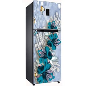 Boplo Designer Blue Flower Fridge Sticker, Multicolor Size(60 x 160cm)