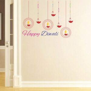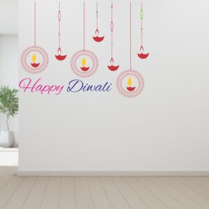 Boplo Decorative hanging diyas happy diwali Wall Sticker, Multicolor
