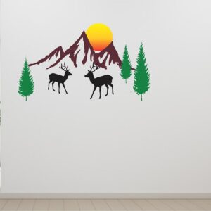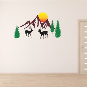 Boplo Mountain view with deer decorative Wall Sticker, Multicolor